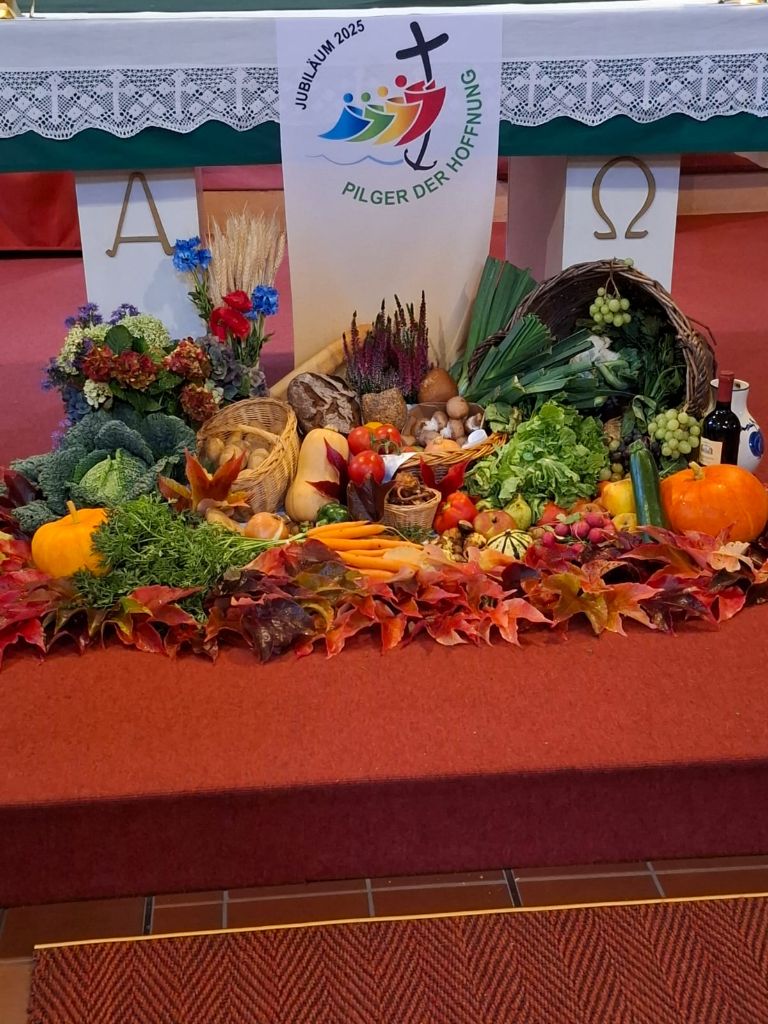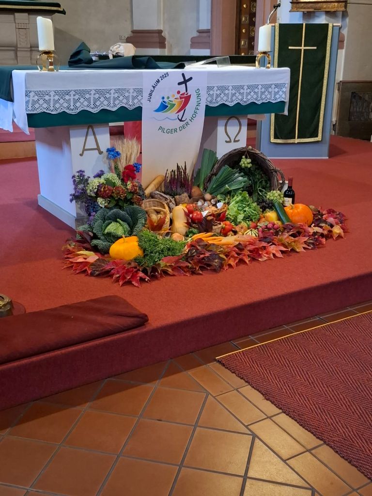 Auch in diesem Jahr sind wunderschöne Altäre für den Erntedank-Gottesdienst in